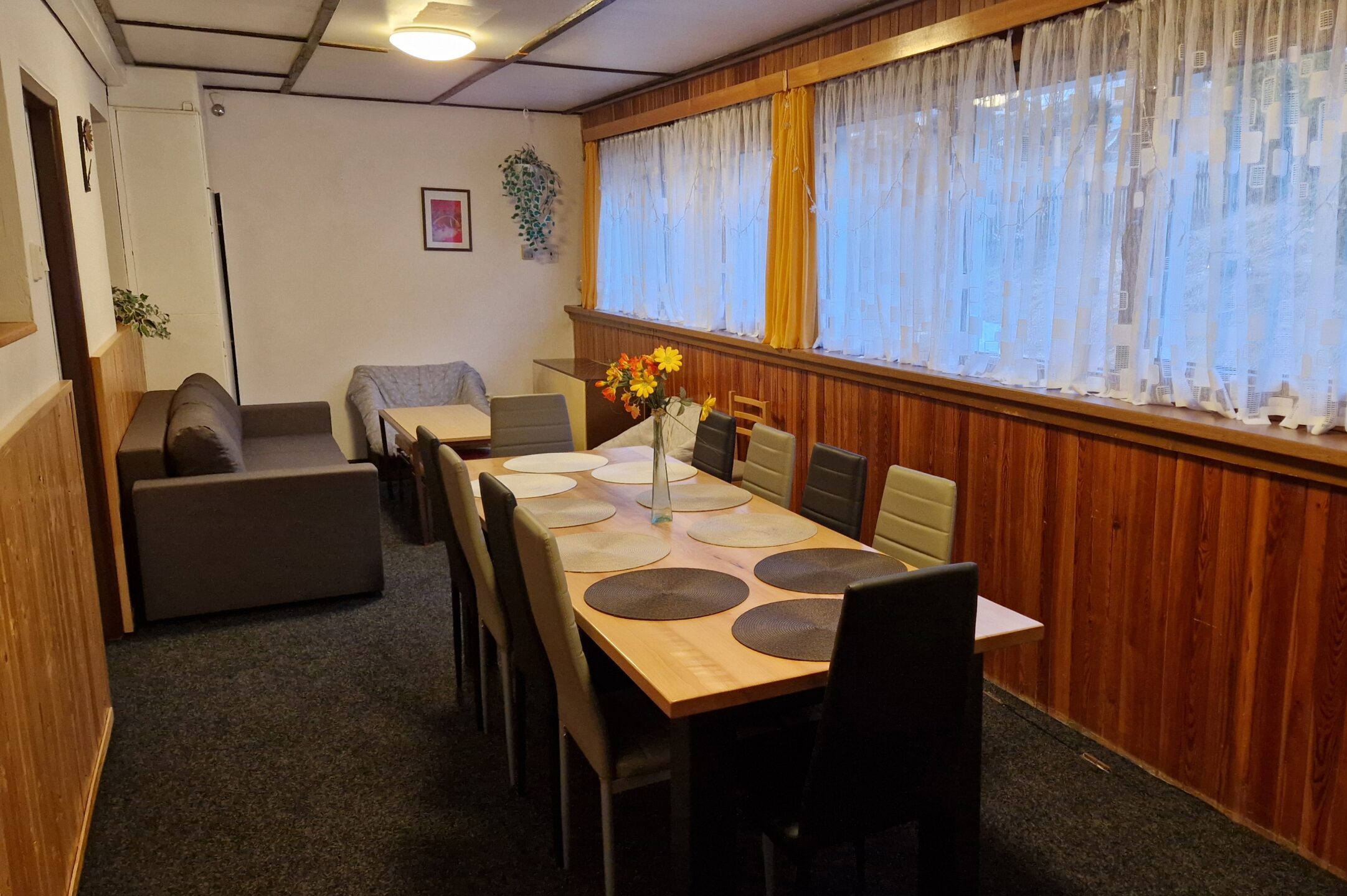 Pronájem celého přízemí – 3 ložnice pro max. 16 osob, kuchyně, společenská místnost s TV, koupelna se sprchovým koutem, 2x WC.